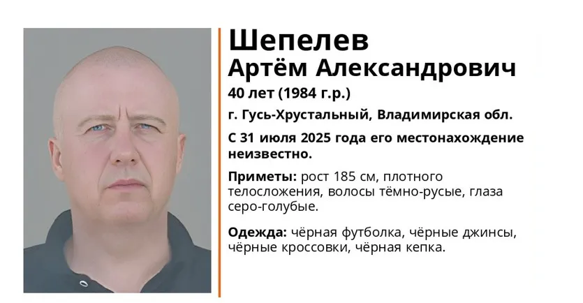 Поисковый отряд «ЛизаАлерт» Владимирской области просит помощи в поисках 40-летнего Артёма Александровича Шепелева, жителя Гусь-Хрустального.