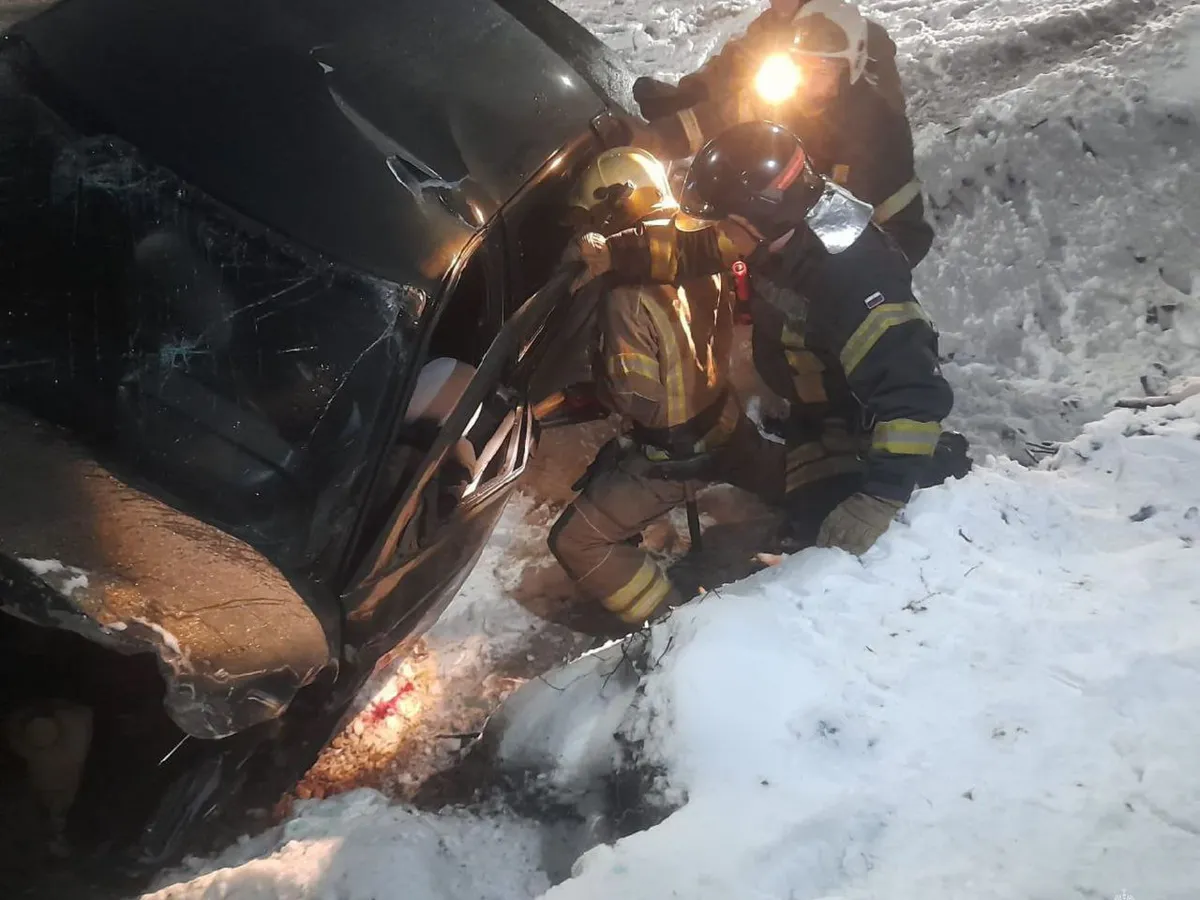 В машине находились четыре человека, и одному из молодых людей понадобилась помощь спасателей. Сотрудники МЧС России извлекли юношу и передали его врачам.