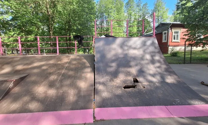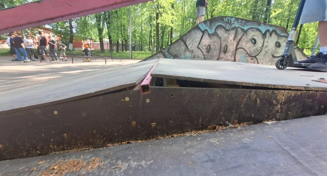 Как установили сотрудники надзорного органа, элементы площадки выполнены из древесных материалов и находятся в неудовлетворительном состоянии: покрытия повреждены, на конструкциях обнаружены трещины и провалы, а ударопоглощающее основание полностью отсутствует. Это создаёт серьёзный риск получения травм при катании.