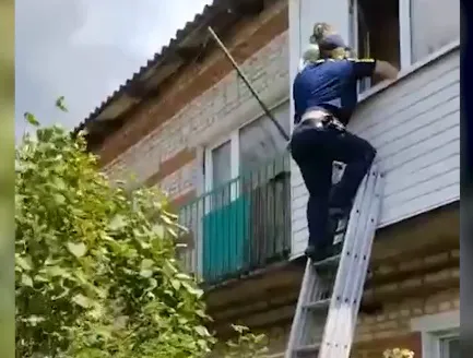 Полицейские быстро оценили обстановку. С помощью лестницы инспектор ДПС Александр Степанов, эксперт криминалистической группы Алена Трофимова и участковый Александр Быков быстро и слаженно произвели эвакуацию матери и двоих детей.