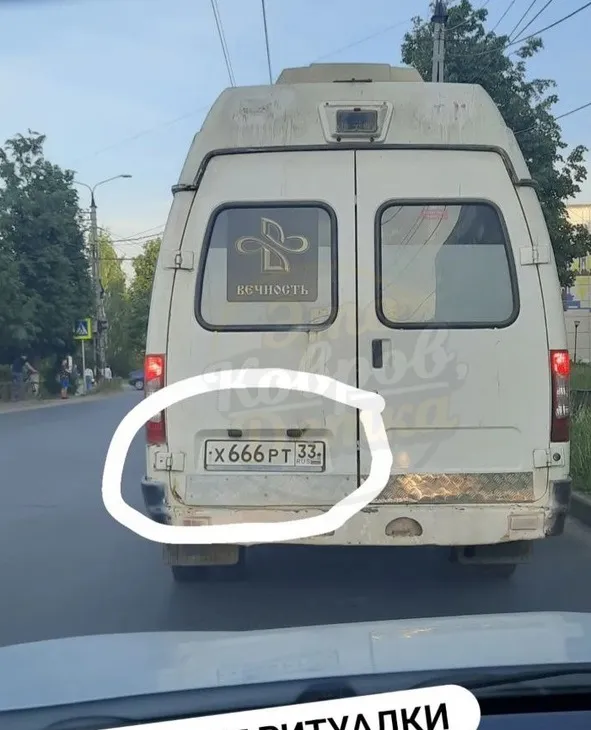 Число дьявола - такое название благодаря библейской мифологии получила цифра 666. Именно эту комбинацию разглядели на машине ритуальной службы в Коврове. Автор фото, которое появилось в местном паблике, оставил оригинальную подпись в духе "Нашей Раши": "Ковровские ритуалки настолько суровы...", предлагая пользователям самостоятельно продолжить фразу.