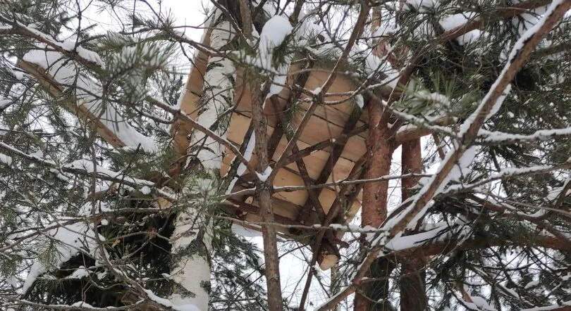 Засидки – это конструкции, установленные на деревьях на высоте 2-3 метра, где браконьеры отслеживают и охотятся на лосей, оленей и кабанов. После обнаружения этих сооружений, они были сразу же удалены.