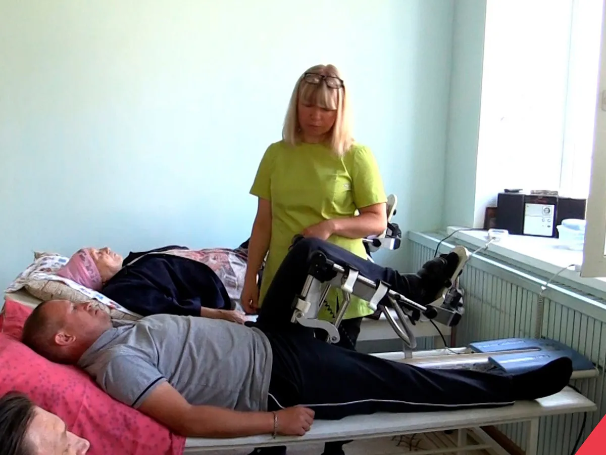 Курс реабилитации - упражнения на нескольких тренажёрах. С их помощью Олег восстанавливает травмированный коленный сустав, укрепляет мышцы ноги. Есть тренажёры, улучшающие нервно-мышечное взаимодействие и формирующие правильную походку.Кроме того, наш земляк проходит медикаментозное и физиолечение, ходит на массаж.