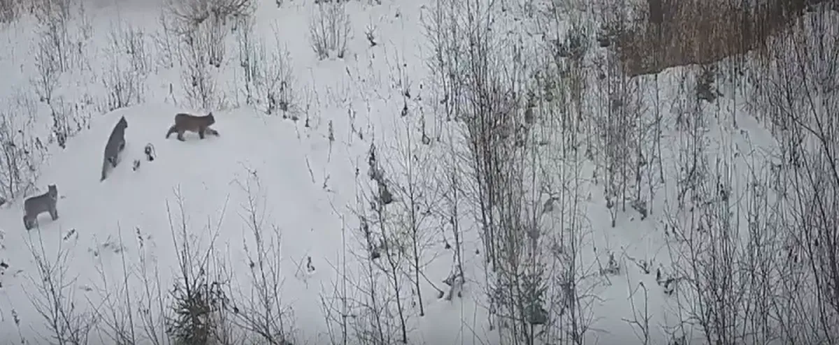 В Петушинском районе фотоловушка запечатлела редкое семейство рысей