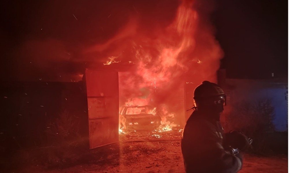 Спасатели быстро подали два водяных ствола и начали тушение. Пламя удалось остановить, но гараж и стоявший внутри легковой автомобиль полностью сгорели. Повреждена также обрешётка кровли соседних помещений.