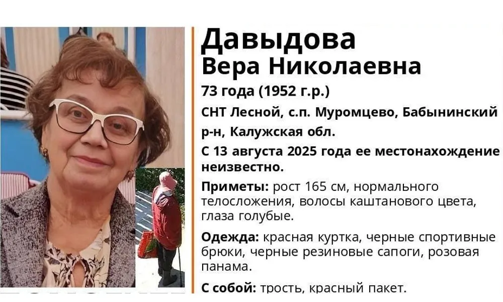Поисковый отряд «ЛизаАлерт» Владимирской области просит помощи жителей региона в поиске 73-летней Веры Николаевны Давыдовой. Женщина пропала ещё 13 августа 2025 года, её местонахождение до сих пор неизвестно.