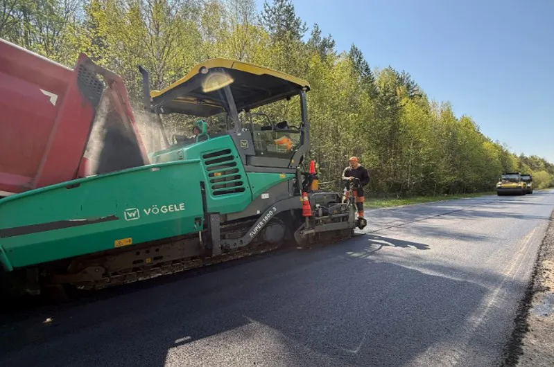 На прошлой неделе специалисты ДСУ-3 начали укладку выравнивающего слоя асфальтобетона на участке между деревнями Языково и Болотский. Затем рабочие уложат верхний слой покрытия и укрепят обочины вдоль трассы.
