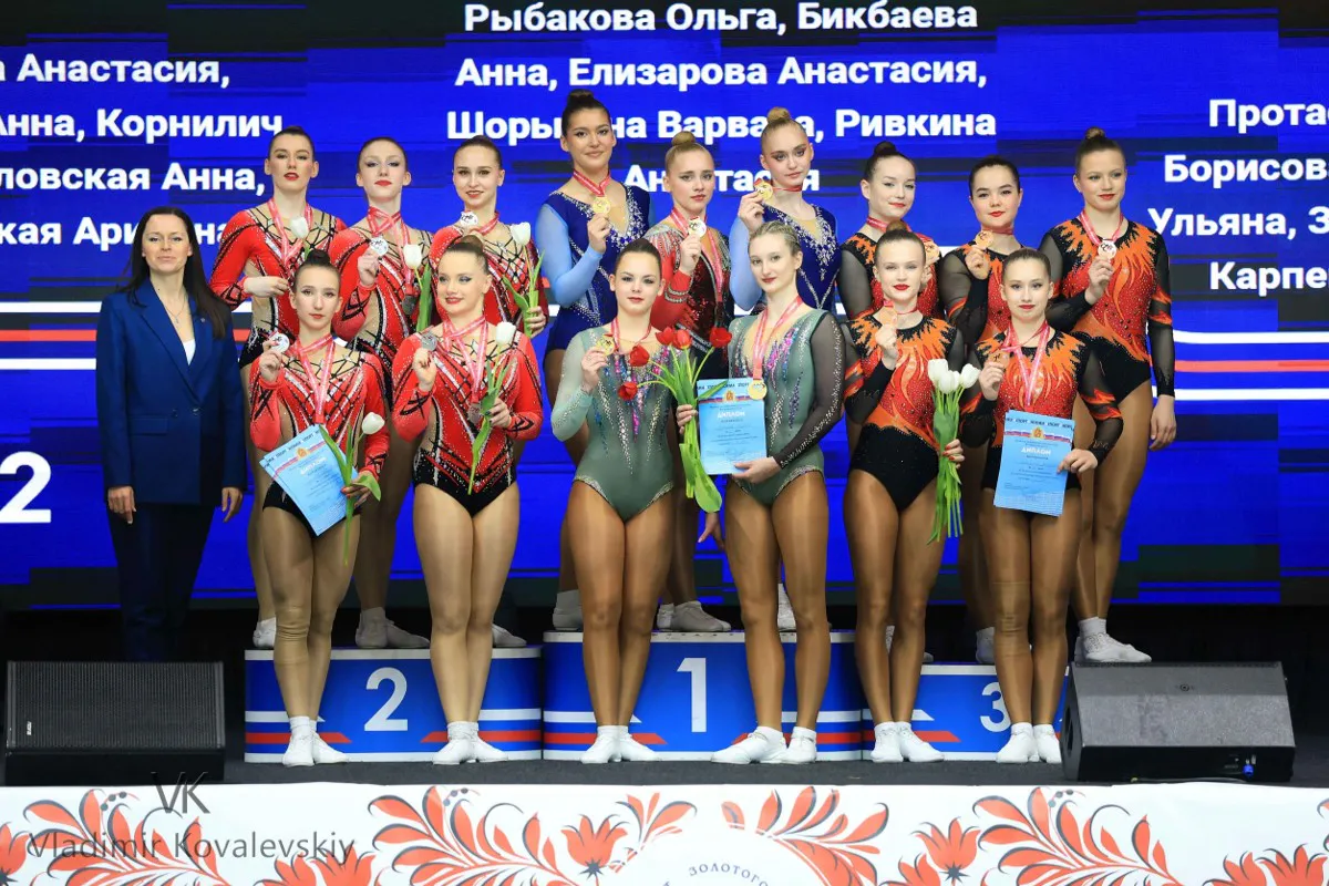 Победителями среди старших спортсменов в групповой программе стали Ольга Рыбакова, Анна Бикбаева, Варвара Шорыгина, Анастасия Ривкина и Анастасия Елизарова. Еще одно золото завоевала команда девушек 12–14 лет. В этой категории лучшими стали Екатерина Кузьмина, Валерия Никифорова, Эльвира Буечкина, Алена Иванютенко и Анна Кузнецова.