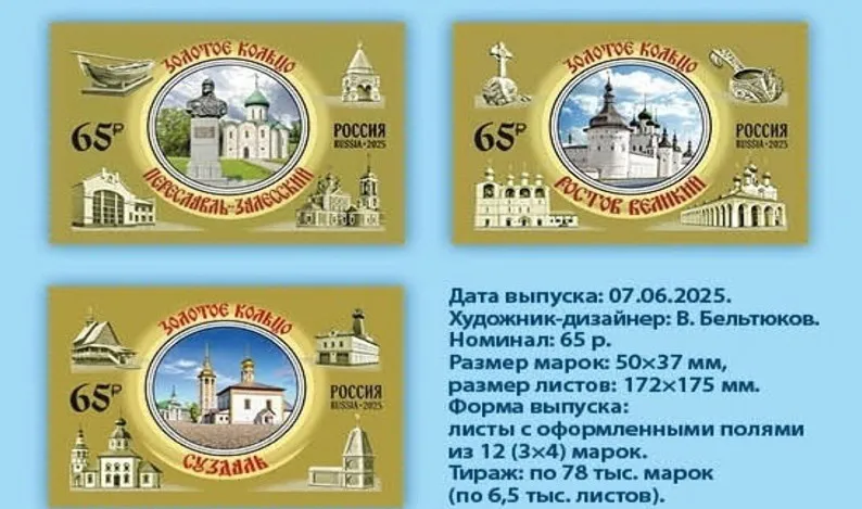 Путешествие по Золотому кольцу России продолжается в почтовом формате. Как сообщили в правительстве Владимирской области, с 7 июня в обращение поступят новые марки, посвящённые историческим городам – Переславлю-Залесскому, Ростову Великому и Суздалю.