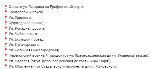 Список улиц: