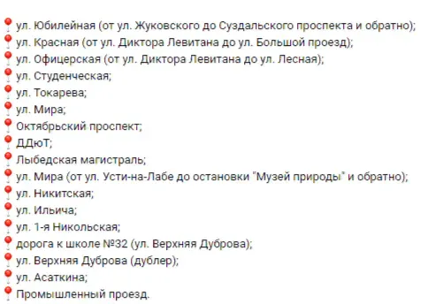 Машины необходимо убрать 15 декабря с 20:00 и до 07:00 утра 16 декабря со следующих улиц: