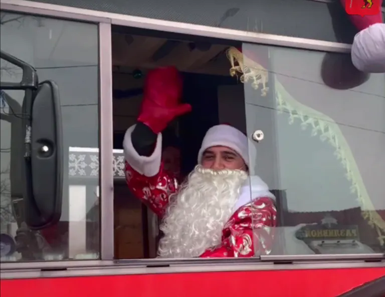 Водителем автобуса будет Дед Мороз, а пассажиров встретит нарядный кондуктор, выступающий в образе Снегурочки. Маленьким пассажирам автобуса Снегурочка будет раздавать подарки.