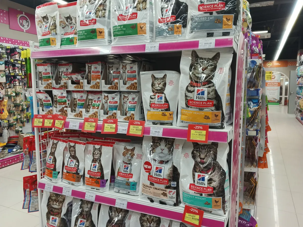 Корма торговой марки Hill's пользуются большой популярностью среди любителей кошек и собак. Средняя цена за пачку сухого корма — 2500 рублей за упаковку средних размеров. Влажный корм — около 80 рублей за маленький пакетик. Во владимирских зоомагазинах можно легко найти альтернативу корму Hill's.