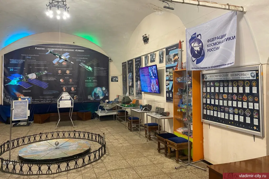 К этой знаменательной дате во Владимирском планетарии впервые будет представлена экспозиция космических шевронов - эмблем космических программ, экипажей, кораблей. Первый раз эмблема появилась на скафандрах у экипажа космического корабля «Союз-19» по программе «Союз- Аполлон» - Алексея Леонова и Валерия Кубасова. На экспозиции во Владимирском планетарии представлены нашивки, которые отражают полеты по пилотируемым программам «Интеркосмос», шевроны экипажей орбитальной станции «Мир» и МКС, экипажей космических кораблей «Союз» и «Шаттл», а также эмблемы Центра подготовки космонавтов, космических предприятий и агентств.