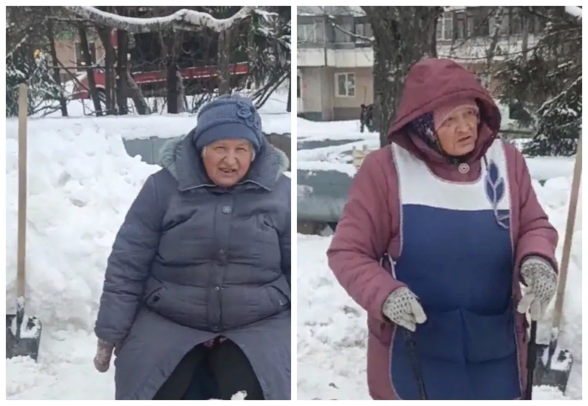 «Да вот, подчищаем, людей-то жалко, а то они ходят и падают», - говорит одна из бабушек.