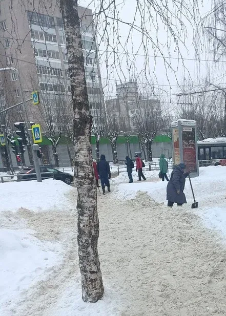 На остановке Красноармейская во Владимире пенсионерка сама расчищает снег. Женщина приносит с собой лопату и чистит тротуар вместе со своей подругой, так как им жалко людей, которые ходят по нечищенным тротуарам и падают. Об этом нашей редакции рассказали сами женщины. Правда, имен своих скромно не назвали.