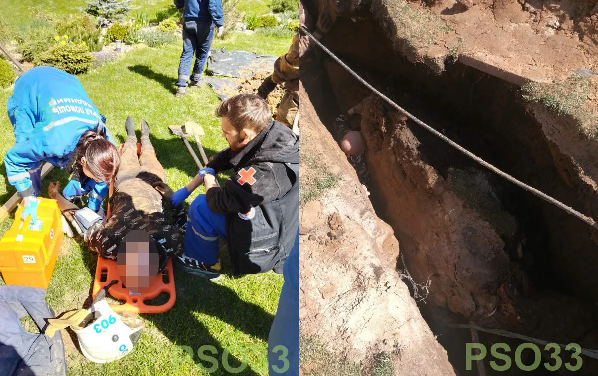 «Уже через 5 минут после сообщения мы прибыли на место. (Спасибо водителям, которые уступали дорогу). Сложность заключалась в том, что в траншее грудь и ноги рабочего были зажаты глиняной глыбой, которая постепенно душила парня. Чтобы защитить его голову, одному из спасателей пришлось отдать свой шлем», - рассказали спасатели.