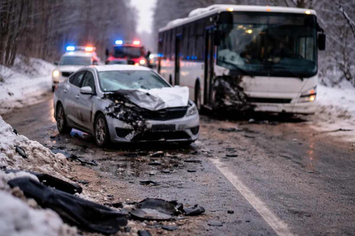 Днём 11 февраля 2026 года в микрорайоне Заклязьменский во Владимире произошло дорожно-транспортное происшествие с участием легкового автомобиля и городского автобуса. По предварительной информации, водитель автомобиля «КИА» не справилась с управлением. Машину вынесло на полосу встречного движения, где произошло столкновение с автобусом, который двигался по городскому маршруту.