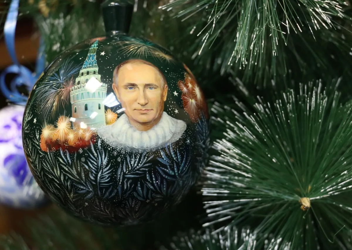 Во Владимире на новогоднюю ёлку повесили шар-игрушку с Владимиром Путиным