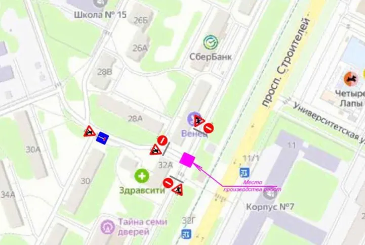 Из-за ремонта до 21 июля перекрыт дублёр дороги по проспекту Строителей. Водителей просят заранее учитывать это при выборе маршрута.