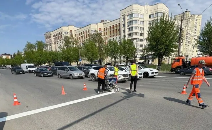Планируется обновление горизонтальной разметки на 232 километрах городских улиц. Для этого применяются как механизированные технологии, так и ручное оборудование. Осевые линии на проезжей части наносят с помощью техники, а пешеходные переходы, стоп-линии, участки искусственных неровностей и зоны остановок общественного транспорта — вручную.