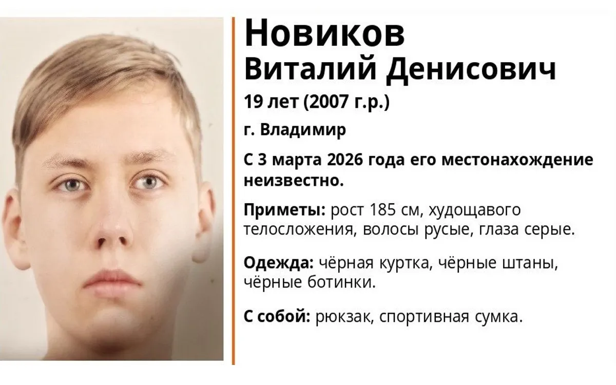 Во Владимире и области проходят поиски 19-летнего Виталия Новикова после его исчезновения 3 марта.