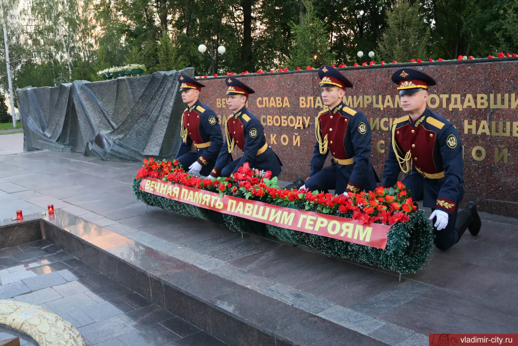 В 4 часа утра, в День памяти и скорби, у Вечного огня на площади Победы во Владимире прошла церемония поминовения советских граждан, павших в годы Великой Отечественной войны. В мероприятии приняли участие первые лица региона и города: губернатор Александр Авдеев, заместитель председателя Законодательного Собрания Вячеслав Картухин, глава города Владимир Дмитрий Наумов, председатель горсовета Николай Толбухин, а также представители молодежных, ветеранских организаций и правоохранительных органов.