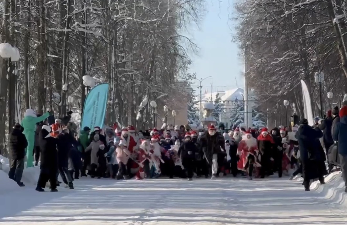 В Центральном парке Владимира царила настоящая новогодняя атмосфера: здесь состоялся яркий праздничный забег, в котором приняли участие десятки Дедов Морозов и Снегурочек.