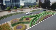 Ключевым элементом обновленного пространства станет центральная разделительная полоса, которую оживят посадки многолетних кустарников и цветочных композиций.