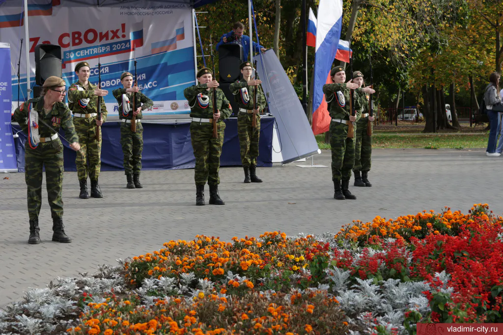 30 сентября в Патриотическом сквере Владимира отметили День воссоединения Донецкой, Луганской народных Республик, Запорожской и Херсонской областей с Российской Федерацией.