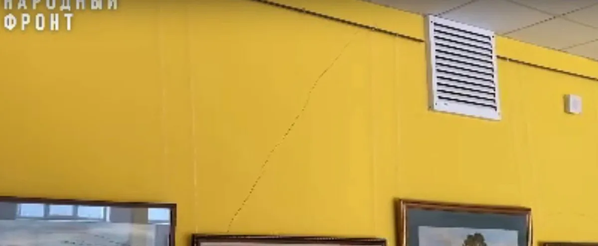 Здание, построенное в рамках нацпроекта "Образование", уже испытывает серьезные проблемы, такие как трещины в стенах. Даже в приемной директора заметны сквозные трещины, представляющие опасность. Кроме этого, двери в коридорах не открываются и не закрываются. А из некоторых дверных проемов торчат железные детали. Сейчас в школе обучается 1250 учеников.