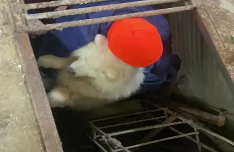 Во Владимире спасатели вытащили испуганного самоеда из смотровой ямы