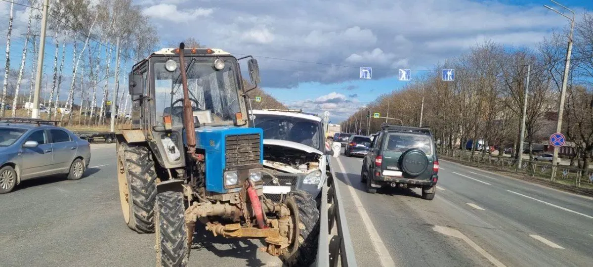 Из-за этого трактор протаранил отечественный автомобиль.