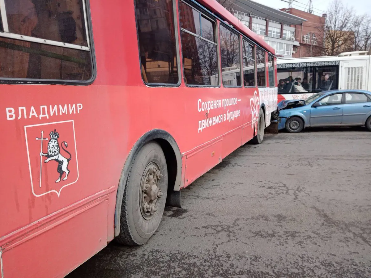 54-летний водитель троллейбуса №2 марки «ЗИУ 359» муниципального перевозчика «Владимирпассажиртранс» выезжал с прилегающей территории и не уступил дорогу легковушке «шевроле Лачетти», которая ехала по главной дороге. В результате чего троллейбус и легковушка столкнулись.
