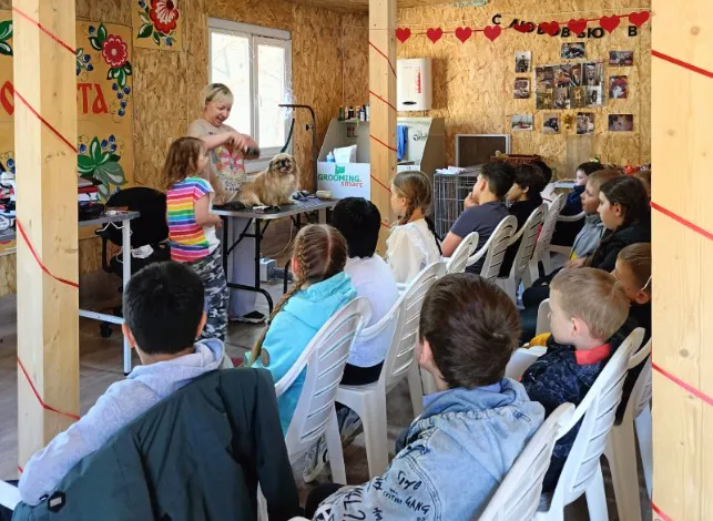 В приюте «Зоозабота» во Владимире состоялась тёплая встреча с учащимися Образовательного центра №7. В рамках программы «Пушистые профессии», реализуемой при поддержке Фонда президентских грантов, в гости приехали ребята из 2 «Е» и 3 «Е» классов вместе с учителем Эльвирой Александровной Осокиной.