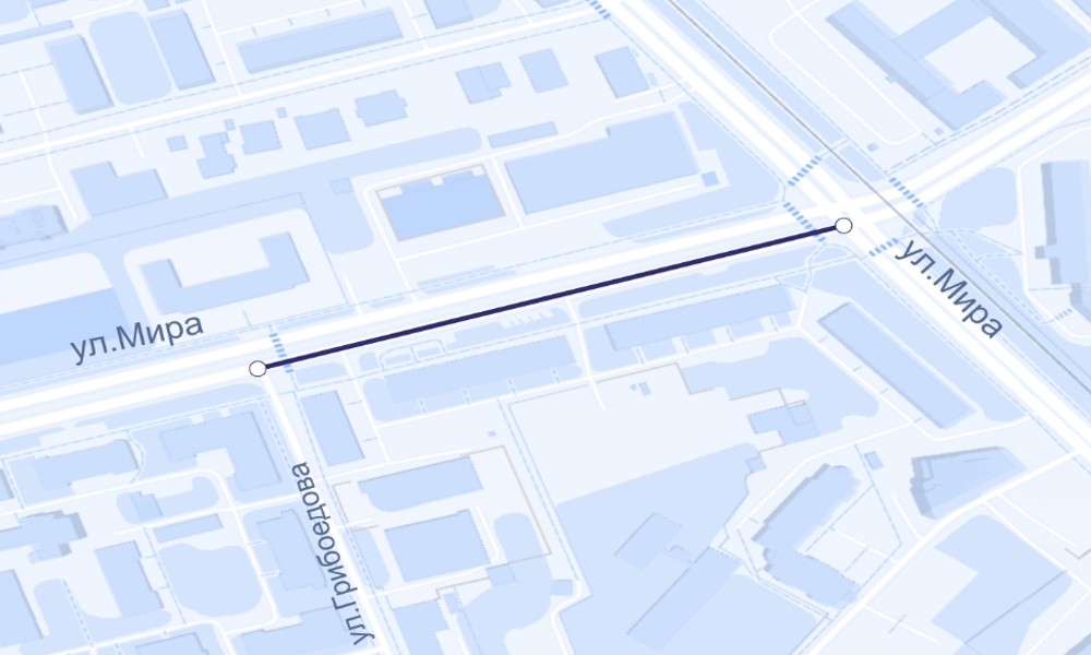 Движение будет перекрыто с 22:00 10 октября до 06:00 11 октября и с 22:00 11 октября до 06:00 12 октября. Ограничения затронут участок от перекрёстка улиц Мира и Грибоедова до дома №92 по улице Мира.