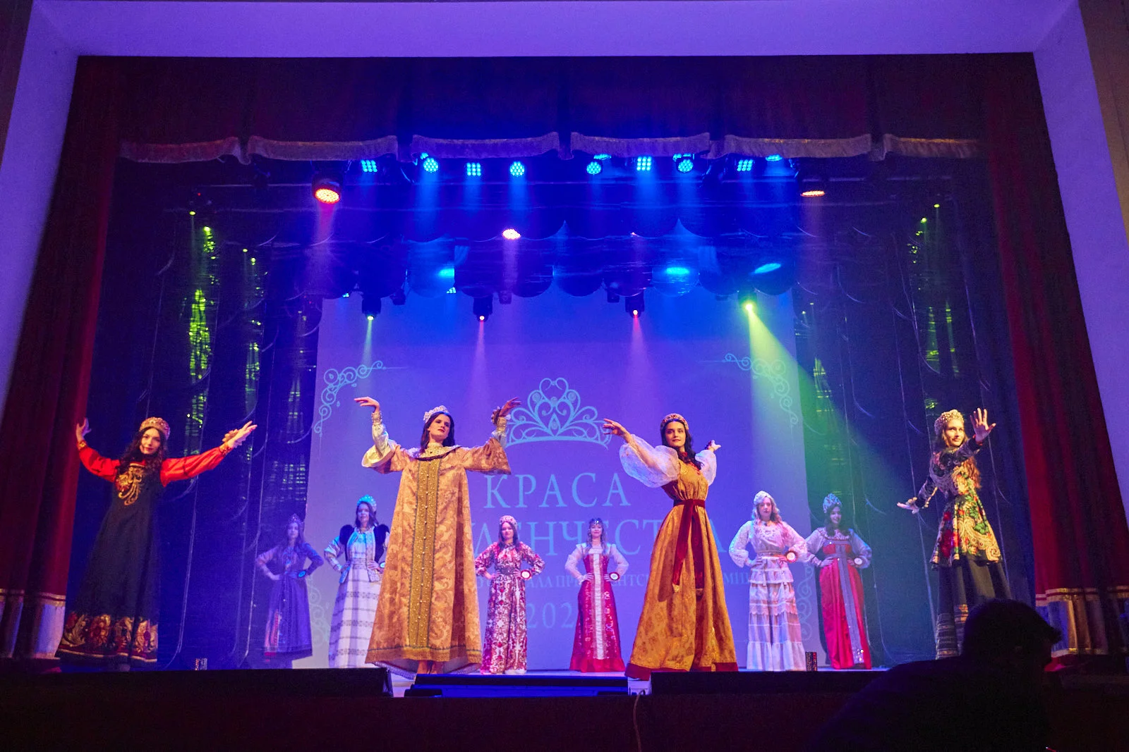 Красавицам предстояло выполнить не только обычное дефиле, но и дефиле в русских народных платьях, а также совместный танец и творческое задание.