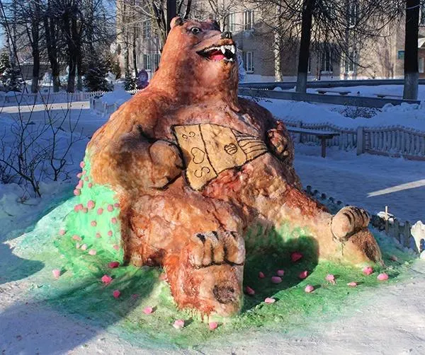 Во Владимирской области осужденные слепили из снега драконов, медведей и матрешек