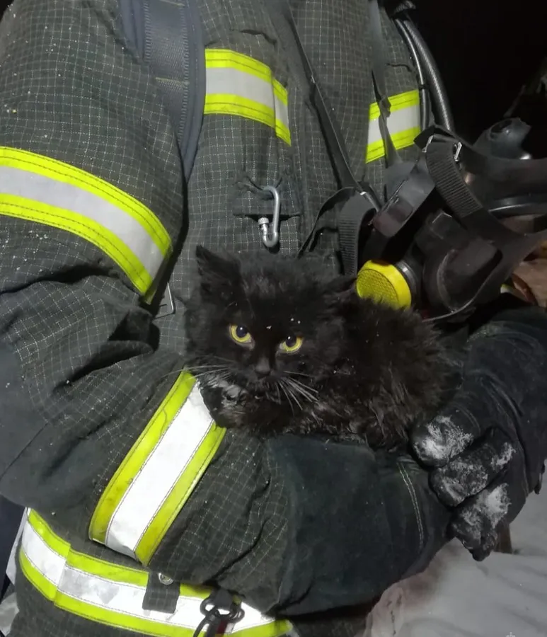 Спасатели не только оказали помощь при тушении огня, но и обнаружили котенка, который оказался в опасной ситуации. Назвали его Угольком. Котенок провел ночь в пожарной машине, где успел отогреться и восстановиться после страшных переживаний.