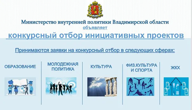 Для участников на сайте Министерства внутренней политики Владимирской области опубликованы нормативные документы, перечень направлений расходов и список необходимых бумаг для участия в отборе.