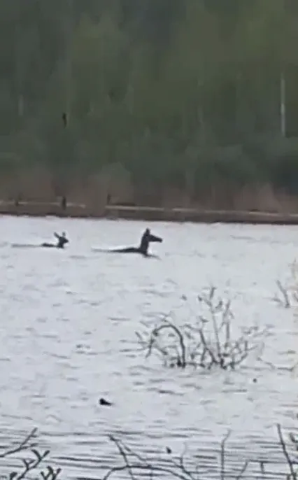 Во Владимирской области в объектив попали благородные олени, переплывающие разлив