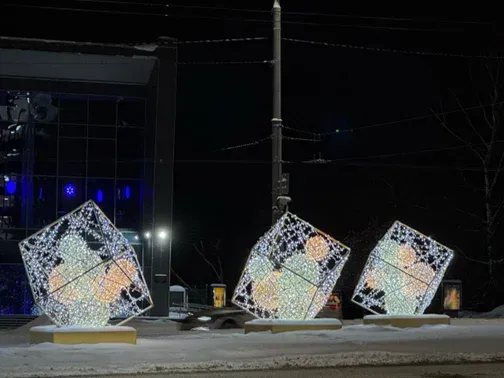 Композиция «Волшебные кубы»: заменила елку «Метелица» на Садовой площади.