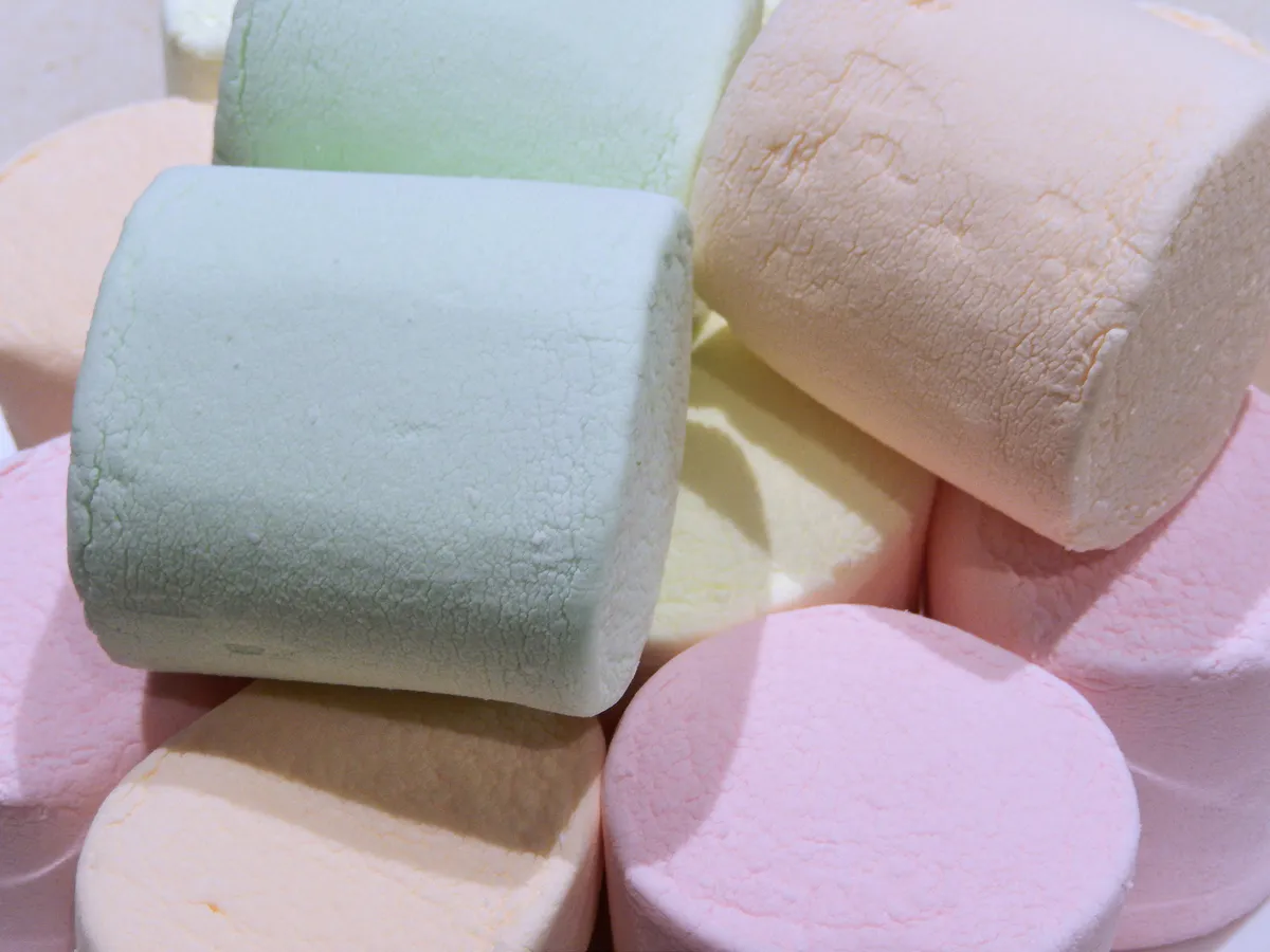 Взбивание массы. Взбивайте желатин с сиропом миксером на высокой скорости около 5-7 минут, пока масса не станет пышной и воздушной. При желании добавьте пищевой краситель для яркого цвета.