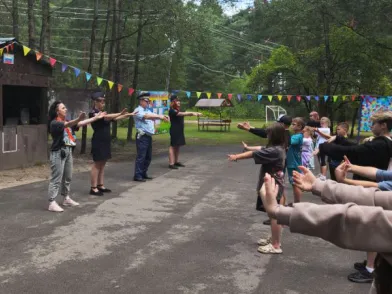 Для двухсот отдыхающих в лагере детей гости провели утреннюю зарядку. Ребята с энтузиазмом выполняли все упражнения. Марина Куликова рассказала о важности физической активности, подчеркнув, что сотрудники полиции регулярно тренируются для поддержания хорошей формы. Также она напомнила о правилах поведения на улице и в общественных местах, а также о личной безопасности.